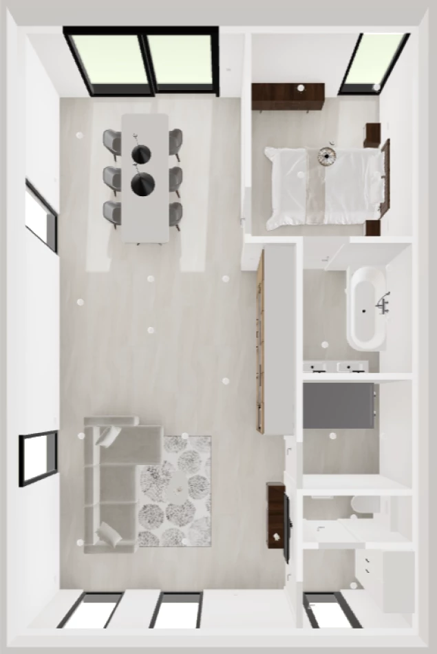 Dankzij slimme inkoop van materialen en onze gestandaardiseerde grondplannen en stijlpakketten, snijden we flink in de bouwkosten. En dat is nog niet alles. Door centraal te werken en veel voor te bereiden in ons atelier, besparen we op de verplaatsingskosten van ons team en de materialen. Wat je krijgt is een topwoning, zonder het stevige prijskaartje.