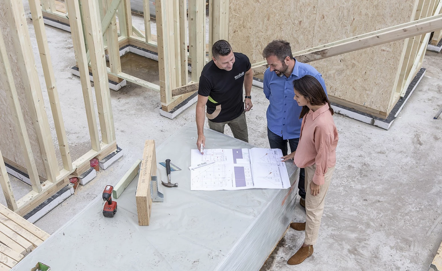 Bovendien werken we met een hecht team van tekenaars tot stielmannen. Zij streven allemaal het doel na om iedere woning op te bouwen volgens de efficiënte en duurzame normen van Ecohuis. Dankzij ons atelier hebben we het bouwproces volledig in handen. Hierdoor leveren we niet alleen snel en transparant op, maar zorgen we ook voor zo weinig mogelijk bouwafval.