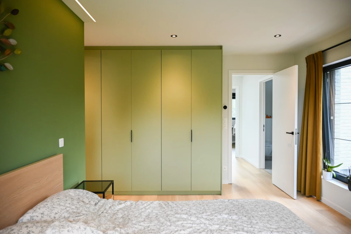 Sarah en Andy bouwden hun droomwoning op een rustig gelegen bouwgrond in Aartselaar, op het einde van een doodlopende straat. Ze kozen voor moderne nieuwbouw in houtskeletbouw omwille van de snelheid van het bouwproces, maar vooral voor de energiezuinigheid.