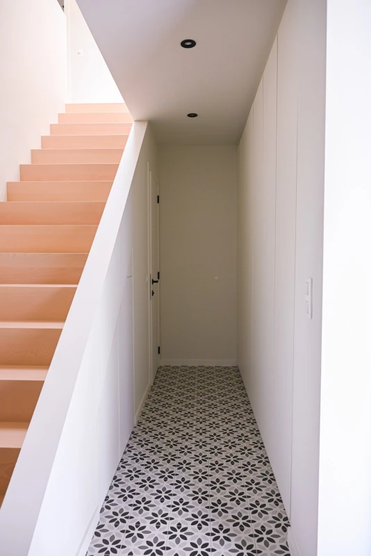 Deze moderne woning, gelegen in een doodlopende straat in Aartselaar, heeft veel natuurlijke lichtinval dankzij grote ramen.